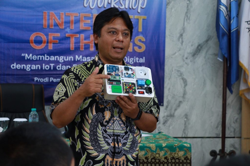 Workshop menghadirkan Dr. Eko Subiyantoro, S.Pd., S.ST., M.T. dari BBPMPV BOE Malang sebagai narasumber utama. Dalam sesi pemaparannya, peserta diajak memahami konsep dan penerapan Internet of Things (IoT) serta embedded system yang berperan penting dalam transformasi digital dan otomasi berbagai sektor. Peserta juga mendapatkan pengalaman praktik langsung menggunakan Trainer IoT berbasis Raspberry Pi Pico, perangkat pembelajaran yang mampu mendeteksi beragam parameter lingkungan dan menampilkan data secara real-time melalui modul OLED maupun antarmuka web.