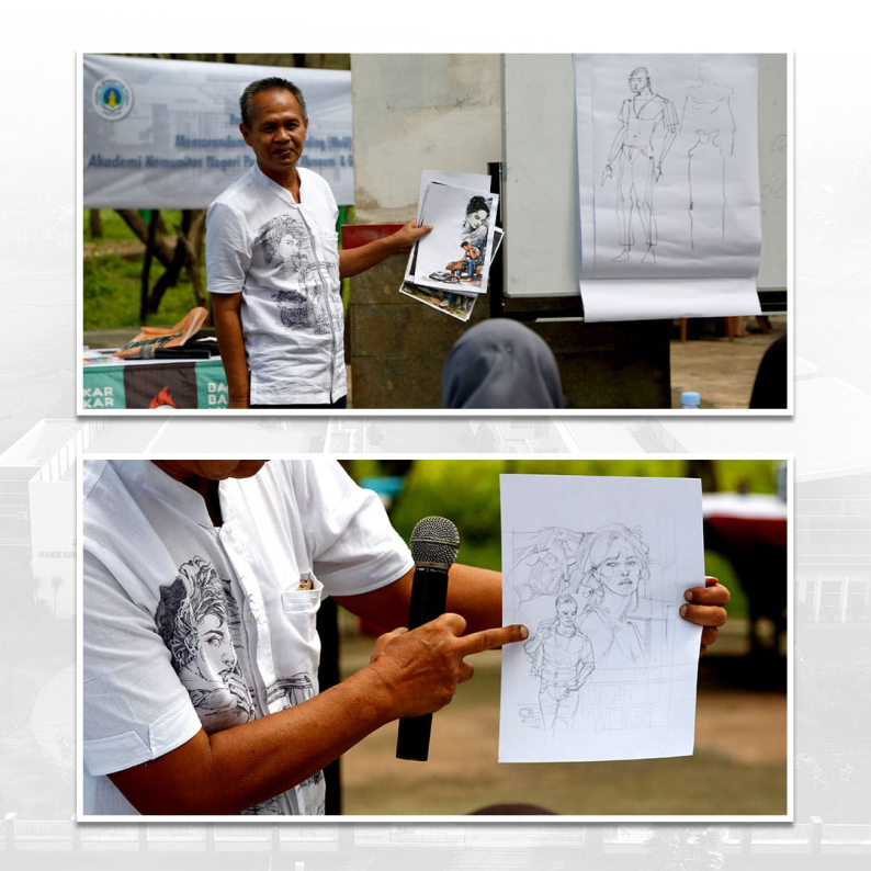 Hari Purnomo sebagai pemateri di hari pertama membagikan pengalaman pribadinya dalam industri komik dan seni grafis, serta memberikan wawasan tentang proses kreatif dan tantangan yang dihadapi dalam menciptakan karya seni visual.