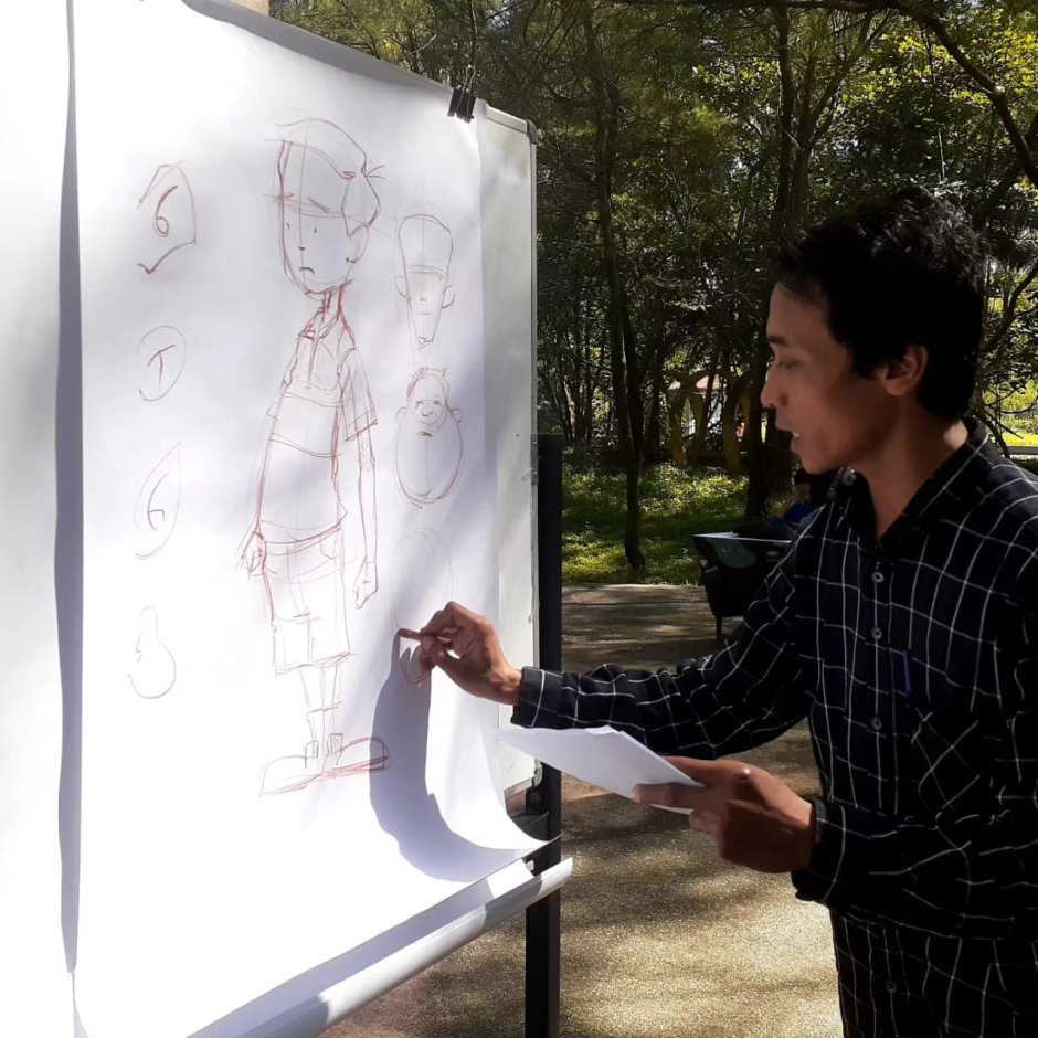 Hari ke dua kegiatan Workshop panitia menghadirkan Animator Profesional yang juga menjadi Pendidik di Sekolah Menengah Seni Rupa (SMSR) Jogja yakni Roni Purwono, S.T. Beliau membimbing secara langsung Mahasiswa untuk menggambar desain karakter . Dengan penuh dedikasi beliau membagikan tips dan trik untuk menggambar desain karakter dan secara langsung mempraktikannya, serta membimbing langsung Mahasiswa yang membutuhkan bantuan.