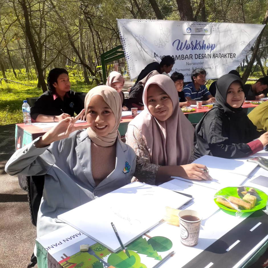 Mahasiswa dari Program Studi Tatalaksana Studio Produksi (TSP) yang berjumlah 23 mahasiswa hadir dalam acara ini untuk mengikuti langsung workshop tentang industri kreatif dan potensi karier di bidang seni visual. Beliau mengilhami para hadirin dengan cerita suksesnya dan memberikan nasihat tentang pentingnya konsistensi, ketekunan, dan kreativitas dalam mengejar impian. Peserta tidak hanya menjadi pendengar tetapi dibimbing secara langsung untuk praktik menggambar bersama narasumber.