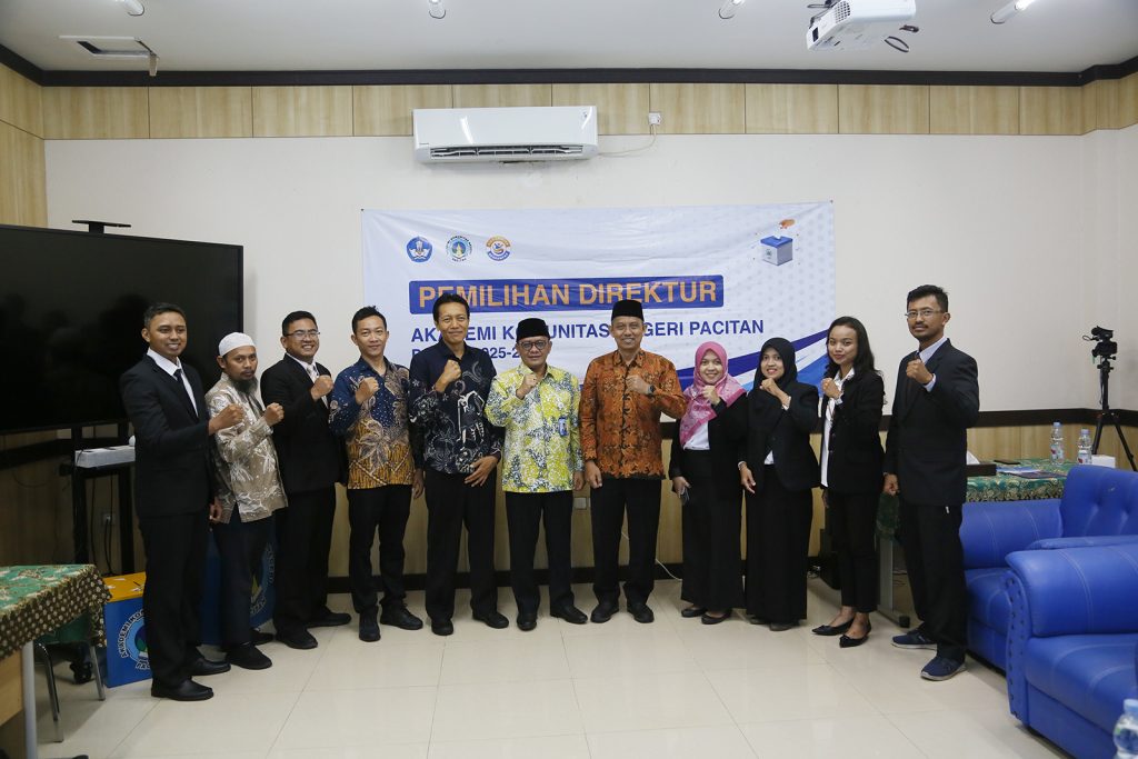 Pemilihan direktur AKN Pacitan tahun 2025 diikuti oleh tiga calon, yakni Prof. Dr. Ir. Joko Triyono, S.T., M.T. selaku direktur petahana, Agus Prianggono, S.Si. selaku Wakil Direktur Bidang Perencanaan, Keuangan, dan Umum, serta Berto Yusuf Nugroho, S.Pd., M.MT. selaku Koordinator Program Studi Pemeliharaan Kendaraan Ringan.