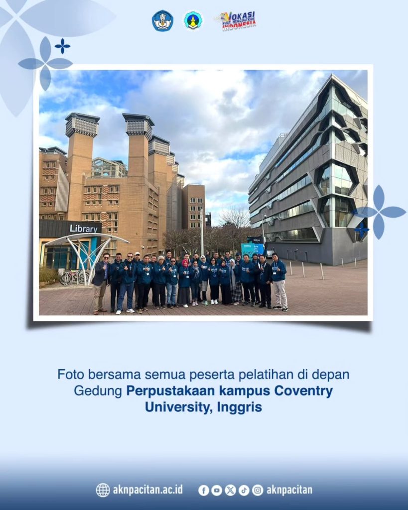 Conventry Inggris – Direktur Akademi Komunitas Negeri Pacitan, Prof. Dr. Joko Triyono, S.T., M.T. baru saja menyelesaikan program pelatihan yang bertajuk Visionary Management Bootcamp for Vocational University Leader pada Sabtu, 14 Desember 2024. Program ini diselenggarakan oleh Coventry University, Inggris. Prof. Joko dan 22 pimpinan Perguruan Tinggi Vokasi di bawah Direktorat Jenderal Pendidikan Vokasi mengikuti Program ini selama 3 pekan yang dimulai 24 November 2024 lalu.